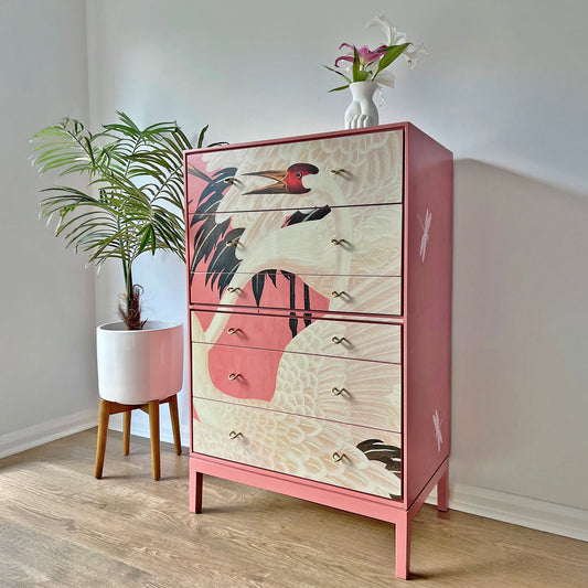 Bespoke Pink Stag C Range Tallboy – Fully Decoupaged in Iconic Pink Gucci Heron Print