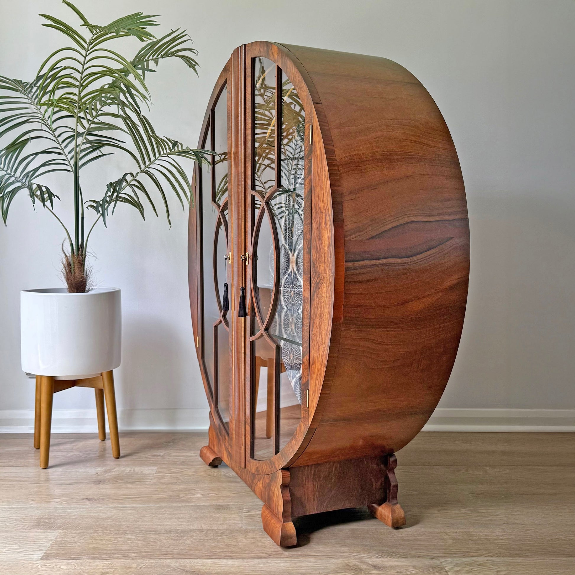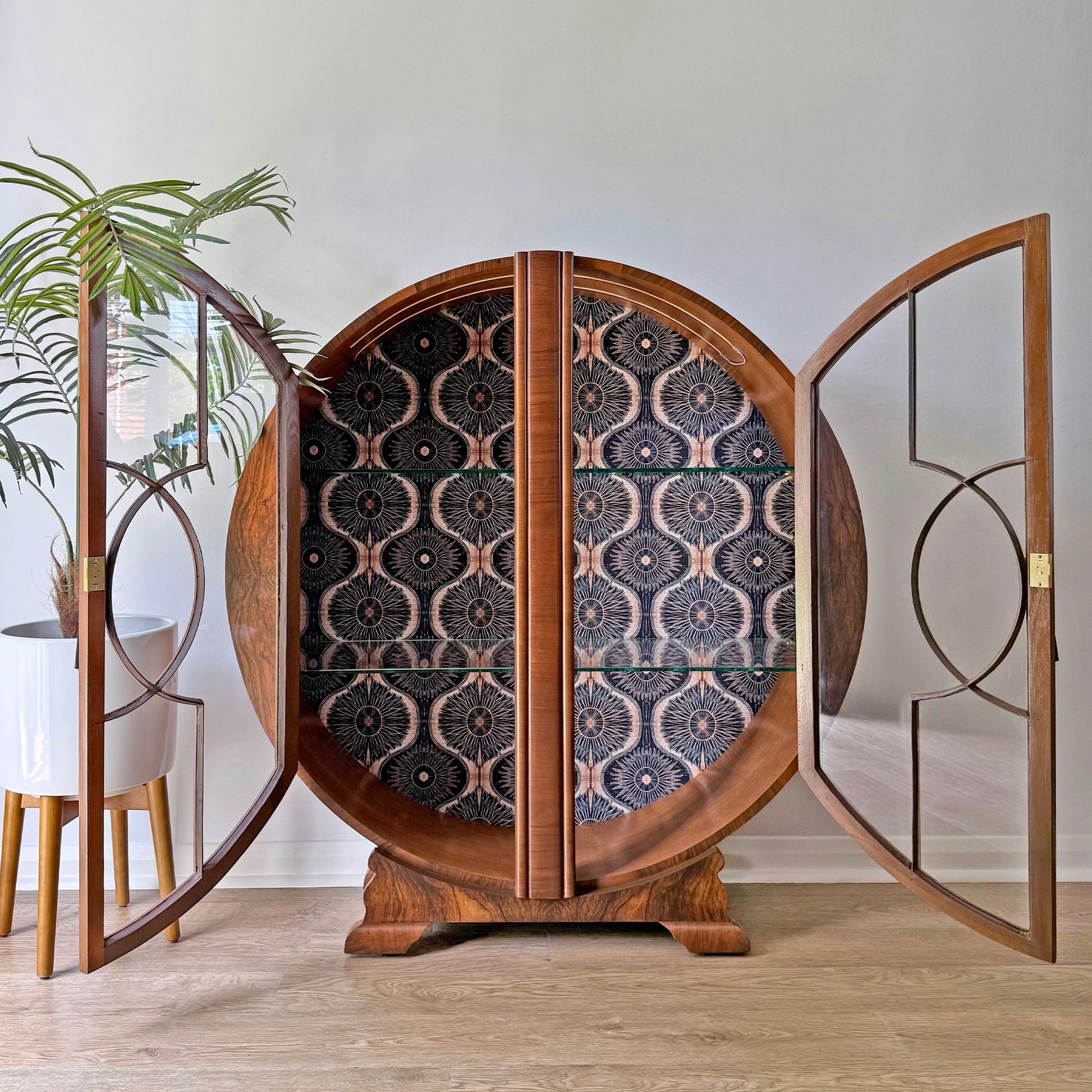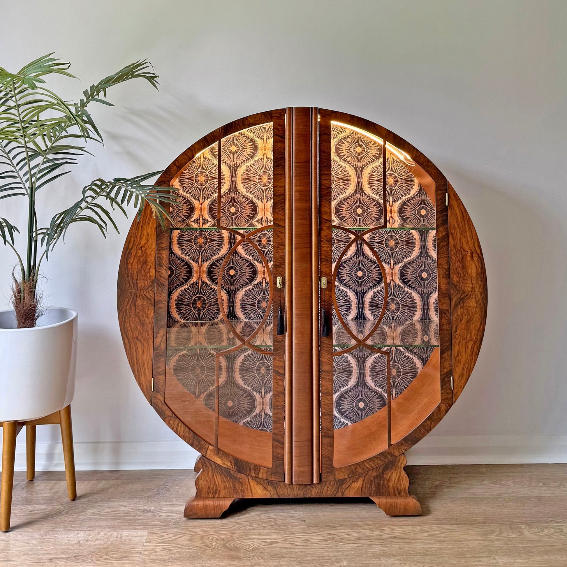 Rare Circular Walnut Art Deco Cocktail Cabinet – Restored Statement Bar